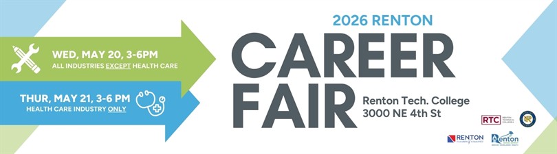 Renton Technical College – Career Services is excited to invite you to the 11th Annual Renton Career Fair Day 2 (Healthcare focus), a cornerstone event made possible through our valued partnership with the City of Renton, the Renton Chamber of Commerce, RTC, and Handshake.