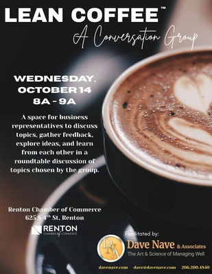 📌Next Lean Coffee Event: Wednesday, October 15 | 8:00–9:00 AM at the Renton Chamber of Commerce