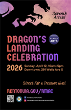 Celebrate Renton’s beloved rooftop dragon at the 7th Annual Dragon’s Landing Street Fair and Dragon Egg Treasure Hunt.