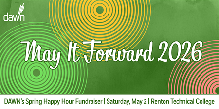 Join us for May It Forward – a happy hour fundraising event bringing together DAWN’s circle of friends and supporters committed to helping survivors of domestic violence to find safety, emergency shelter, advocacy and support to thrive.